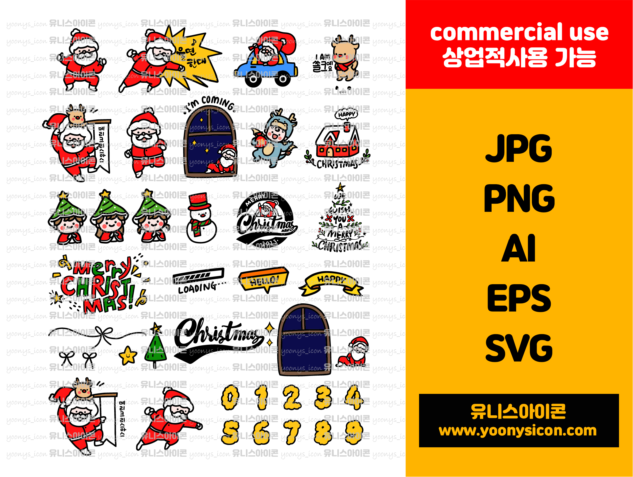 크리스마스 아이콘 캘리그라피 24종 세트 2_산타 루돌프 트리 눈사람 숫자 등